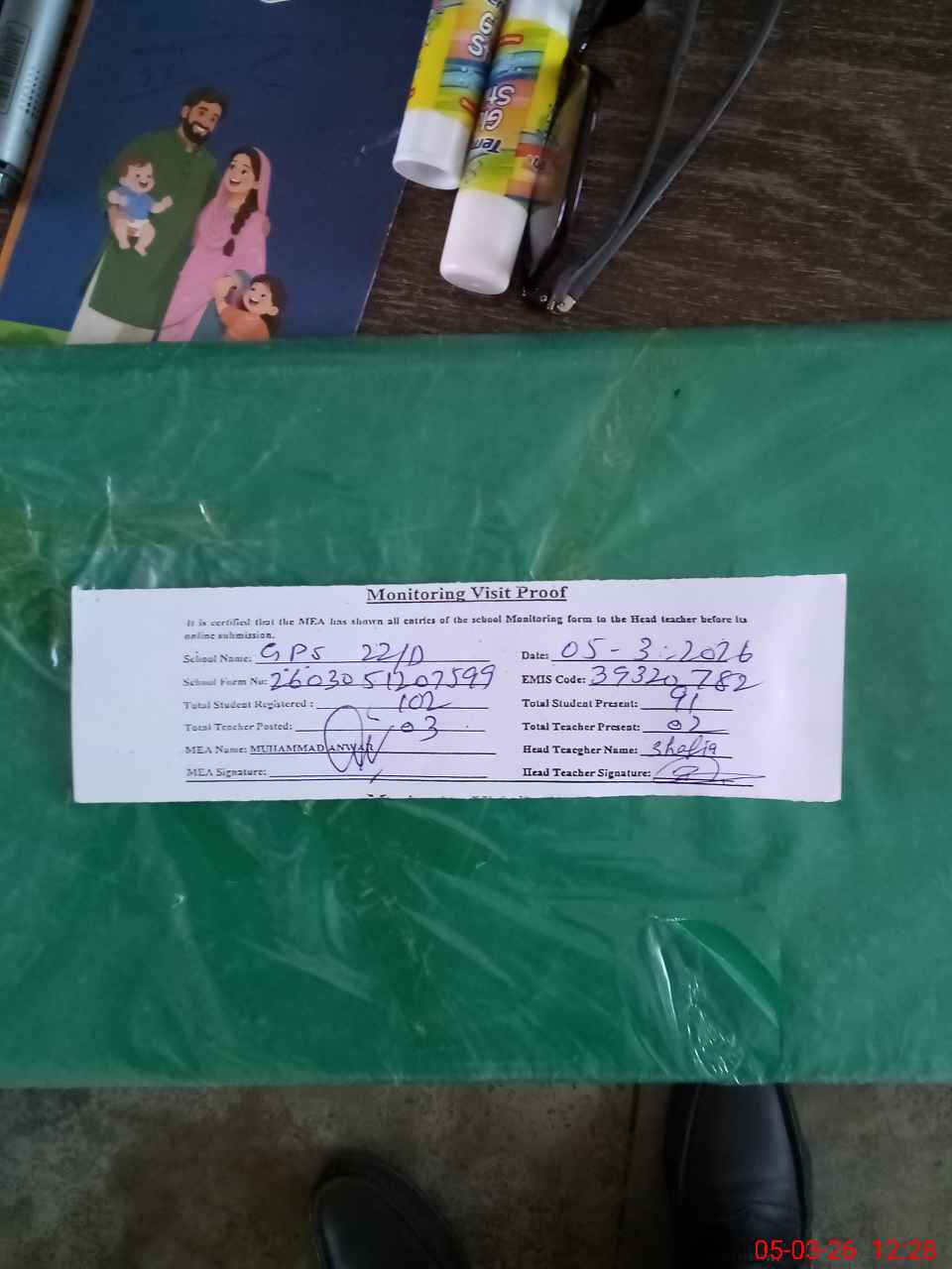| Attendance Register | Head Teacher | MEA with School | Visit Proof |