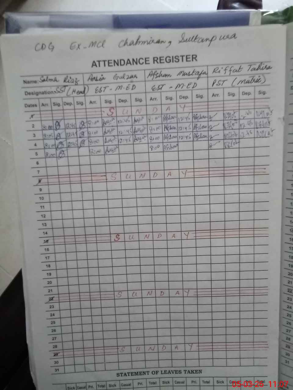 | 34**** | Am**** Mu**** | PST Science/Maths | Regular | 6 | 0 | 0 | 5 | 0 | 0 | 0 | 0 | 1 | Maternity |