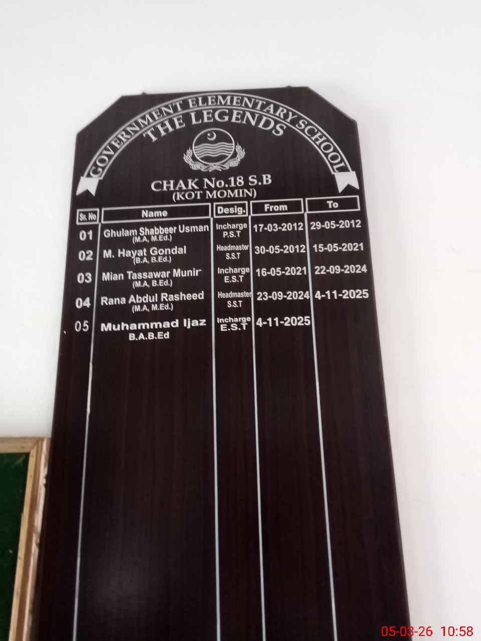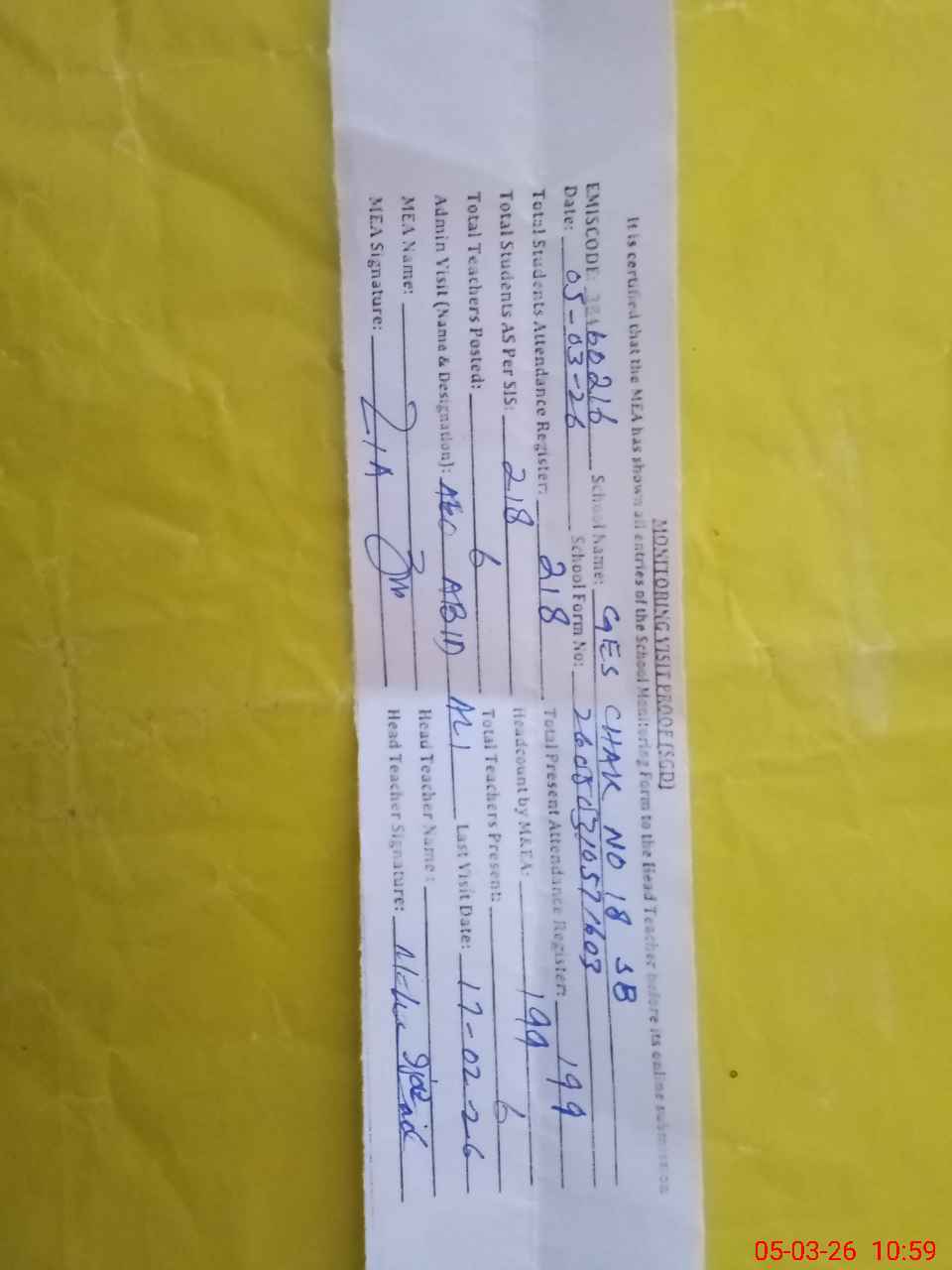 | EMIS Code: 38460216 | Name of School: GES CHAK NO.18 SB | |||