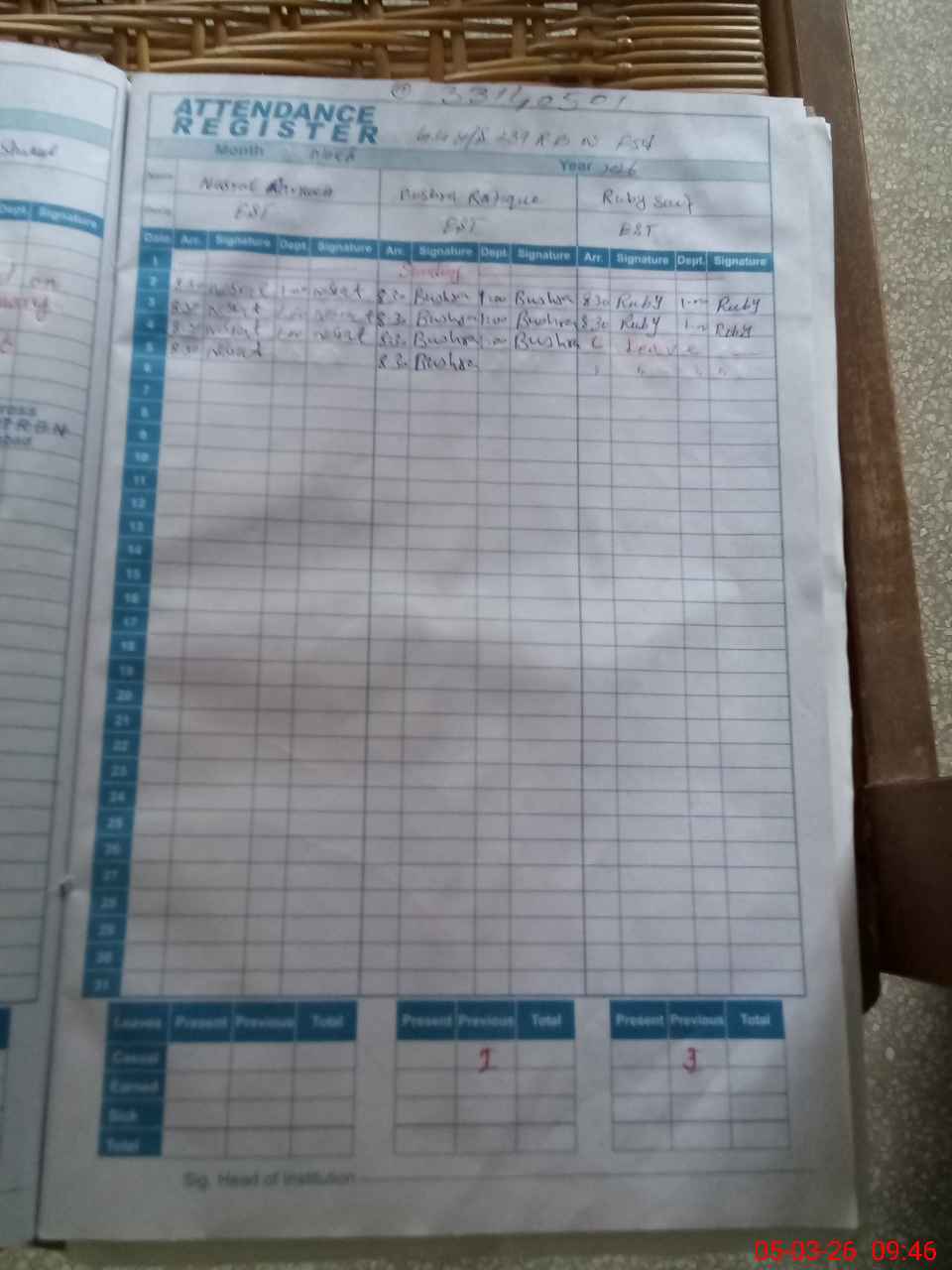 | 33**** | Ru**** Sa**** | EST Science | Regular | 2 | 0 | 0 | 0 | 0 | 0 | 0 | 0 | 2 | Casual |