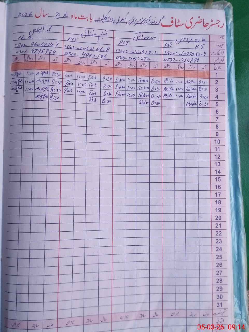 | Name: AB**** FI**** Designation: (School Headmaster's/Headmistress's) Head Mistress Phone/Cell Number: 03**** |