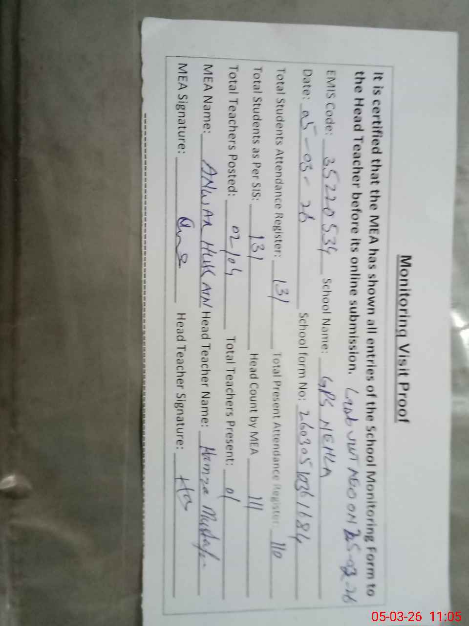 | EMIS Code: 35220534 | Name of School: GPS NEHLA | |||