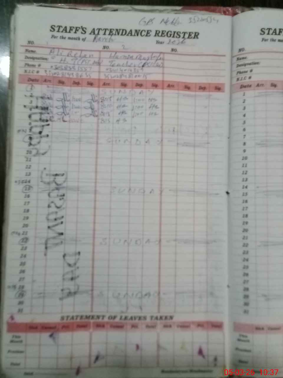 | Remarks (Use Separate Page if Required): Last visit AEO on 25 February 2026 Boundary wall uplift work under progress of one side remaining also minor crack one wash room nonfunctional due to sewerage problem 02 class Room dangerous condition remaining also required minor work and white wash | |||||
