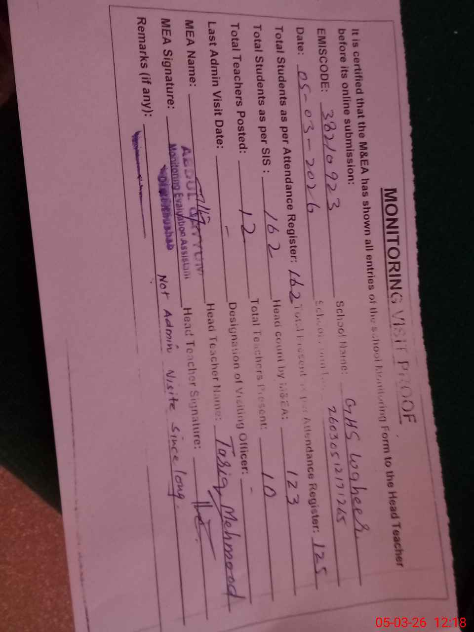| EMIS Code: 38210923 | Name of School: GHS WAHEER | |||