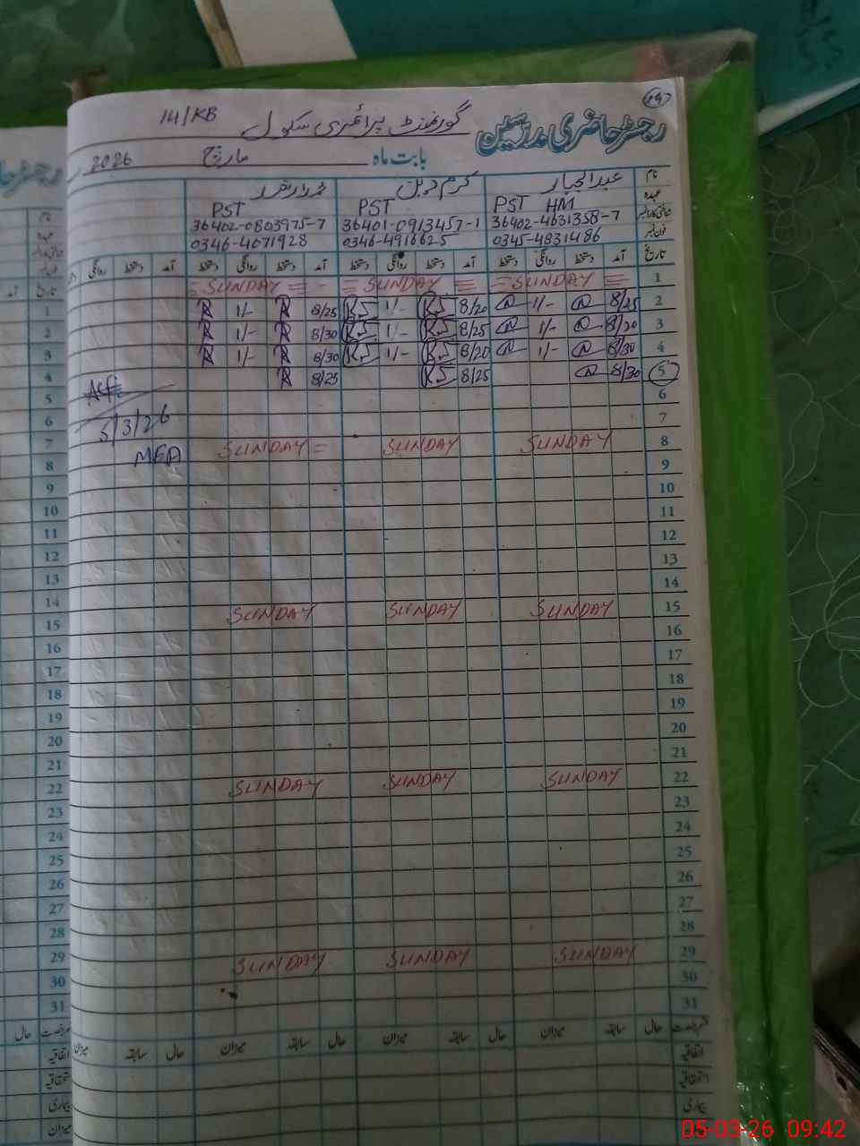 | Name: AB**** JA**** Designation: (School Headmaster's/Headmistress's) PST Phone/Cell Number: 03**** |