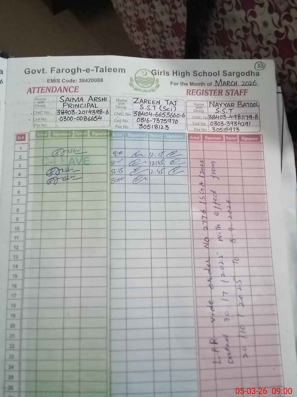 | EMIS Code: 38420088 | Name of School: GGHS FAROGH-E-TALEEM NST SARGODHA | |||