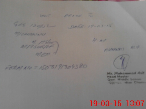 | Name: SY**** AT**** HU**** Designation: (School Headmaster's/Headmistress's) SST SC HM Phone/Cell Number: 03**** |