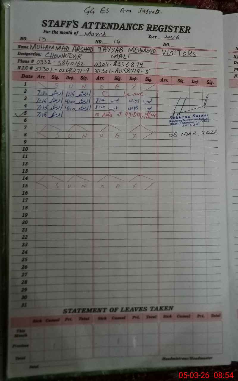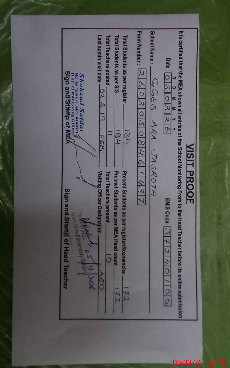 | EMIS Code: 37240100 | Name of School: GGES ARA JASROTA | |||