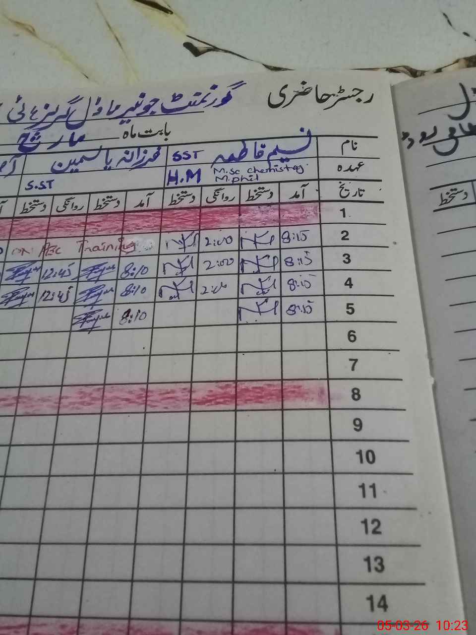 | CNIC | Full Name | Designation | R/C | Absence During Last Calender Month |