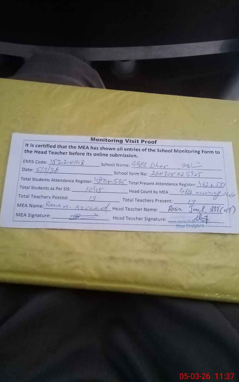 | EMIS Code: 35220148 | Name of School: GGES DHER SHAHDARA | |||