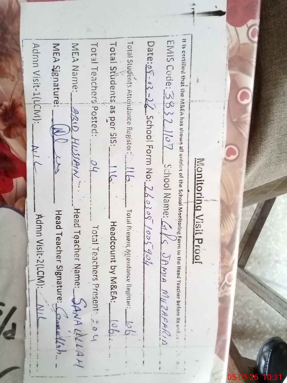 | EMIS Code: 38321107 | Name of School: GPS JAMIA MUZAFARIA | |||
