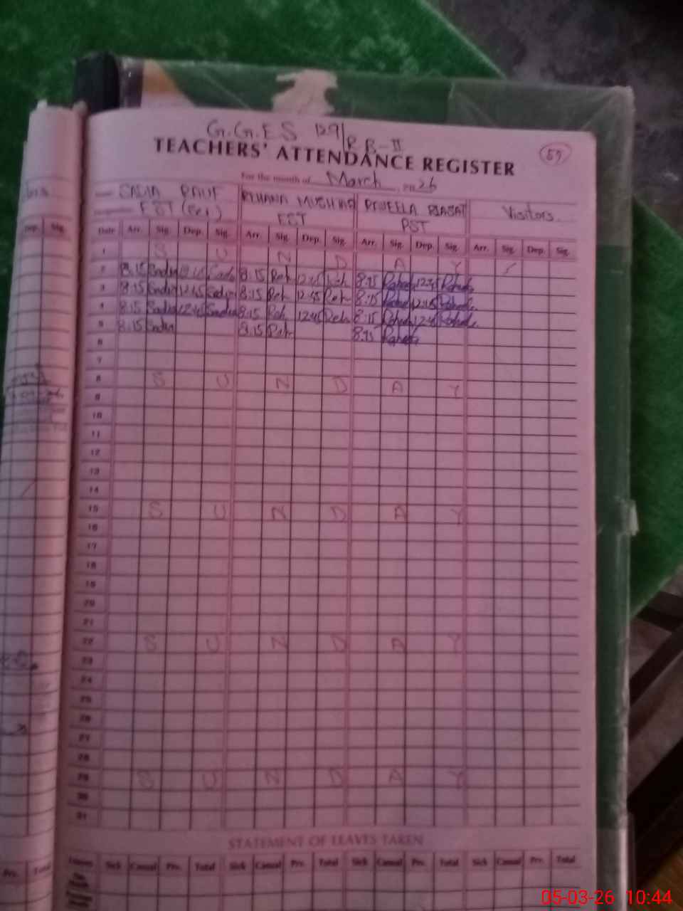 | Leave | Duty | Absent | Maternity | Medical | Ex- Pak |