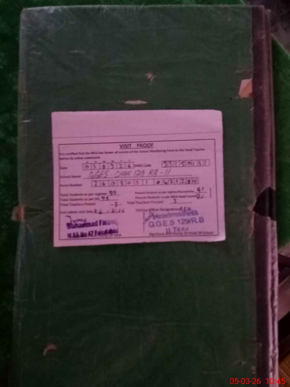 | Attendance Register | Head Teacher | MEA with School | Visit Proof |
