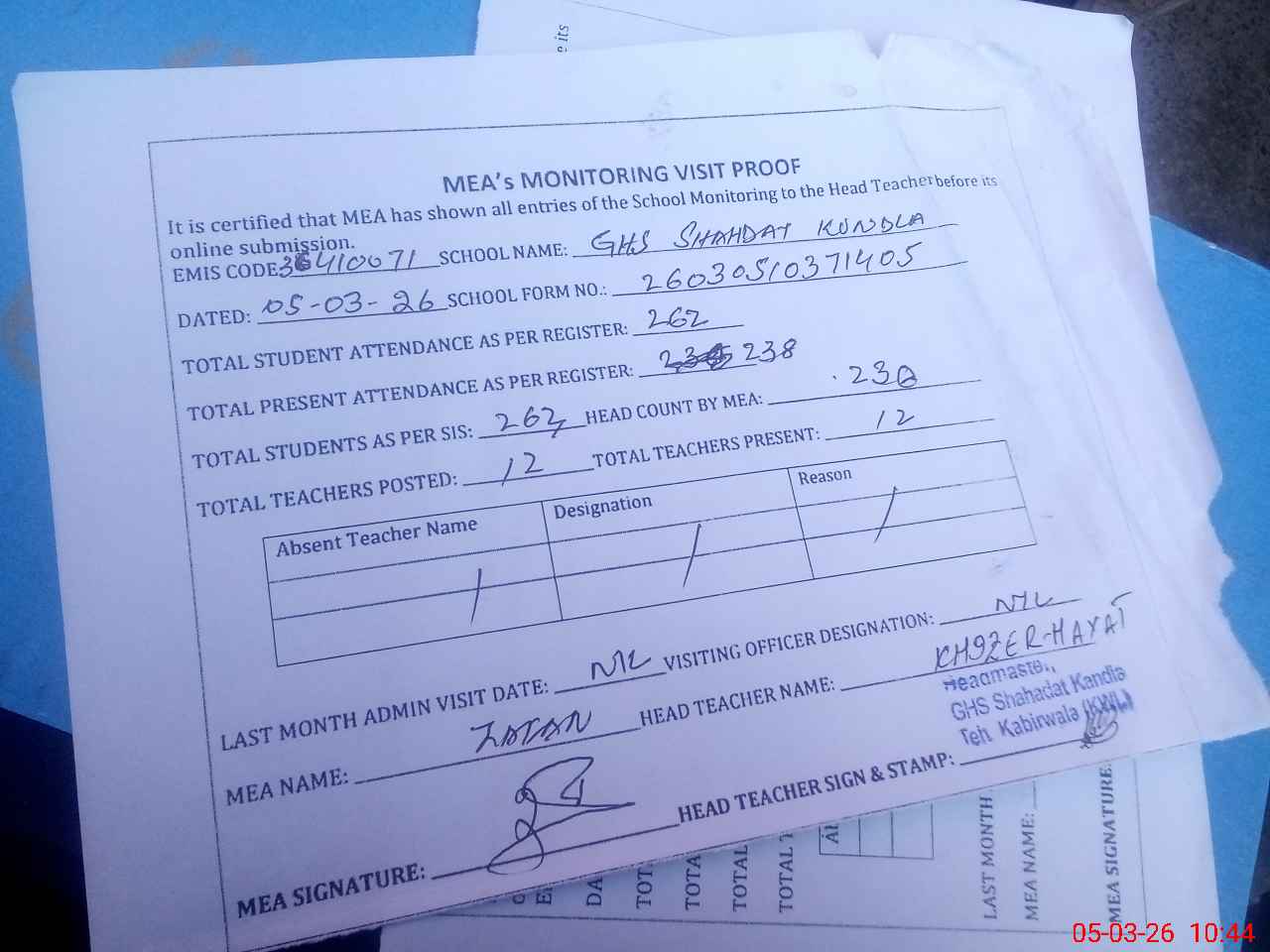 | EMIS Code: 36410071 | Name of School: GHS SHAHADAT KUNDLA, ABDUL HAKIM | |||