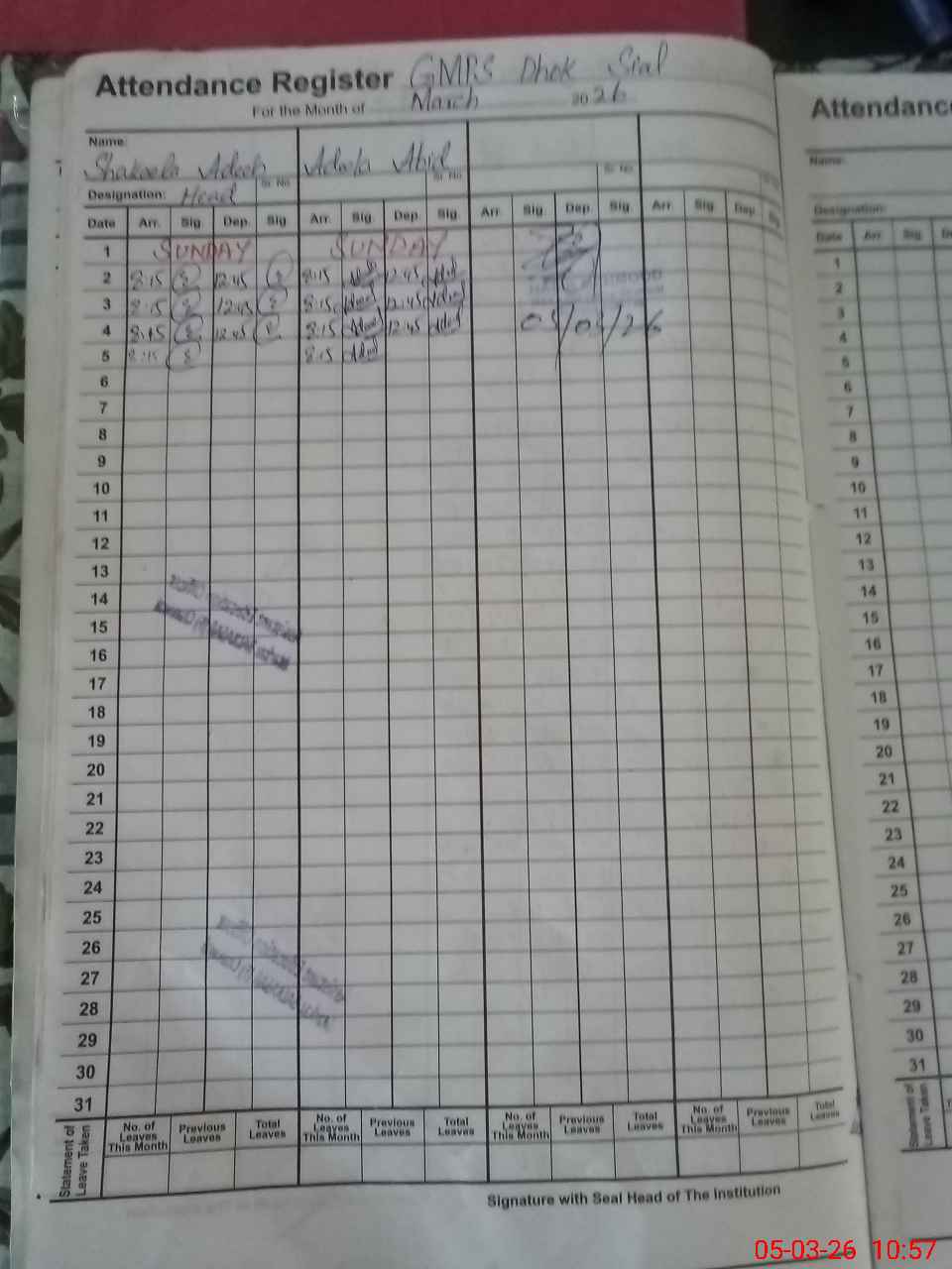 | Name: Sh**** Ad**** Designation: (School Headmaster's/Headmistress's) Headmistress Phone/Cell Number: 03**** |