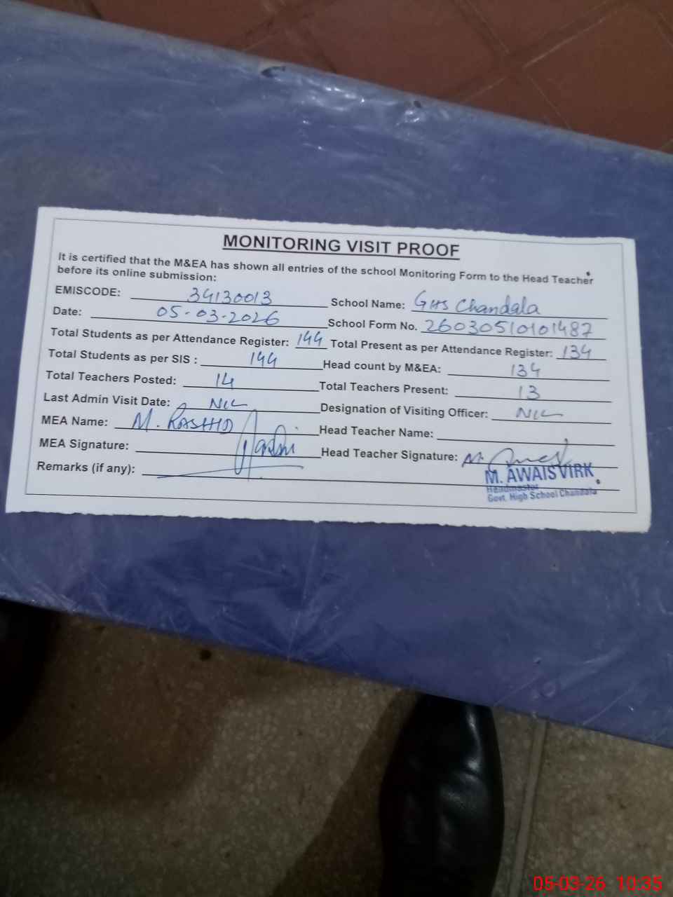 | EMIS Code: 34130013 | Name of School: GHS CHANDALA | |||
