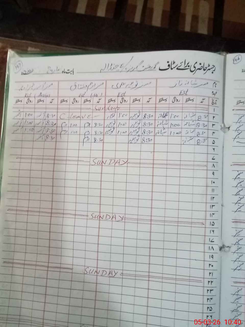 | CNIC | Full Name | Designation | R/C | Absence During Last Calender Month |