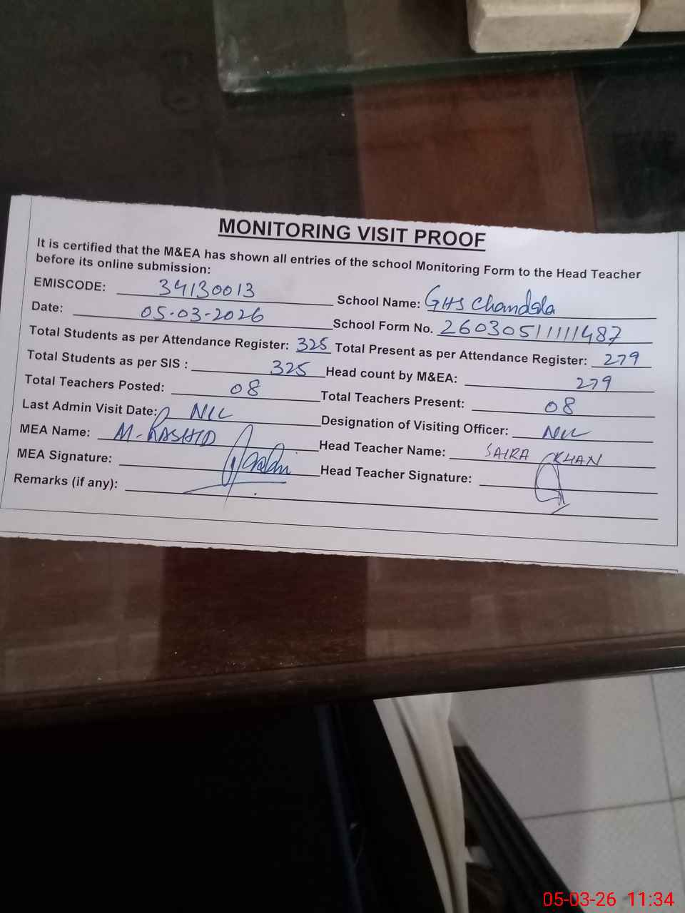 | EMIS Code: 34130028 | Name of School: GGHS CHANDALI | |||
