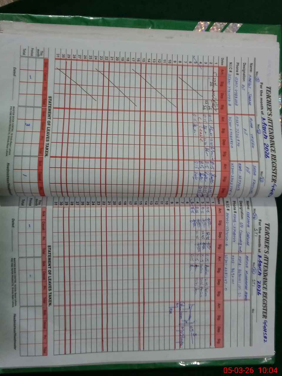 | Remarks (Use Separate Page if Required): It is pertinent to mentioned here that teacher Saima Mehboob PST found absent since 08 April, 2025. There are 06 toilets in construction process through ADP schedule | |||||