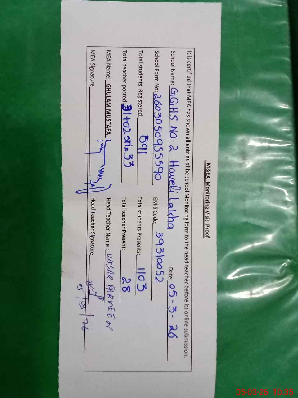 | EMIS Code: 39310052 | Name of School: GGHS NO. 2 HAVELI LAKHA RAILWAY ROAD | |||