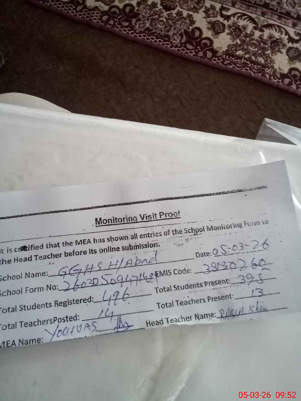 | EMIS Code: 38130260 | Name of School: GGHS HAIDER ABAD | |||