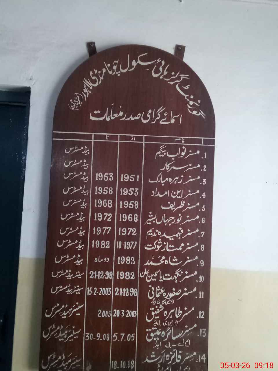 | Name: NA**** SH**** Designation: (School Headmaster's/Headmistress's) Senior Head Mistress Phone/Cell Number: 03**** |