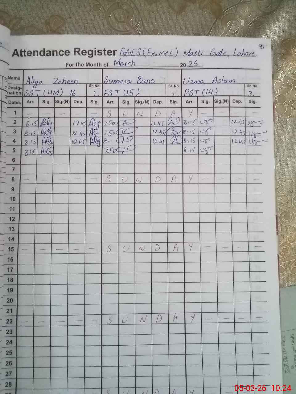 | 35**** | Kh**** Kh**** | PST Arts | Regular | 0 | 0 | 28 | 0 | 0 | 0 | 0 | 0 | 0 | Absent (Un-Authorized) |