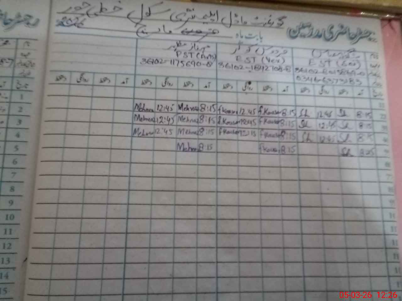 | Name: Sh**** Ab**** Designation: (School Headmaster's/Headmistress's) EST Sci Phone/Cell Number: 03**** |
