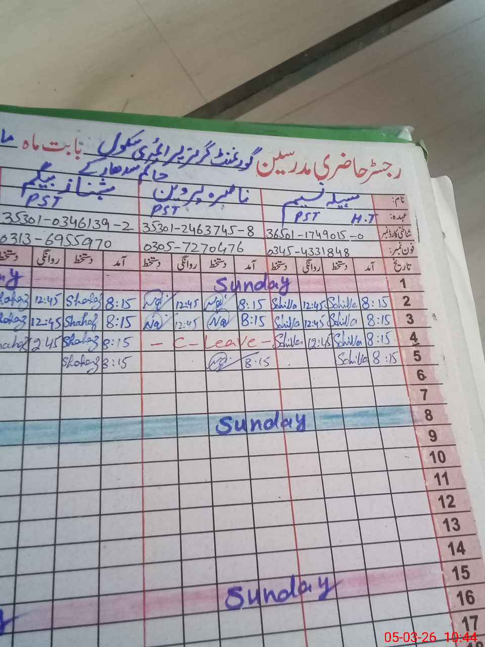 | Name: So**** Na**** Designation: (School Headmaster's/Headmistress's) PST Phone/Cell Number: 03**** |