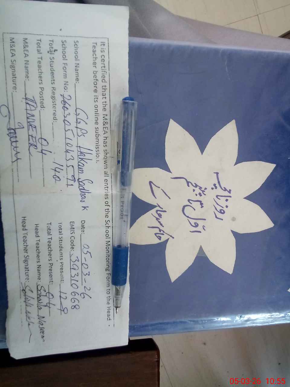 | Attendance Register | Head Teacher | MEA with School | Visit Proof |
