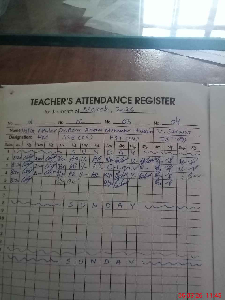 | CNIC | Full Name | Designation | R/C | Absence During Last Calender Month |