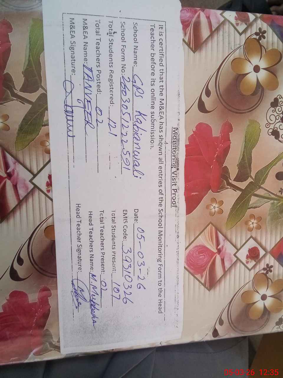 | EMIS Code: 39310326 | Name of School: GPS KABIAN WALI | |||