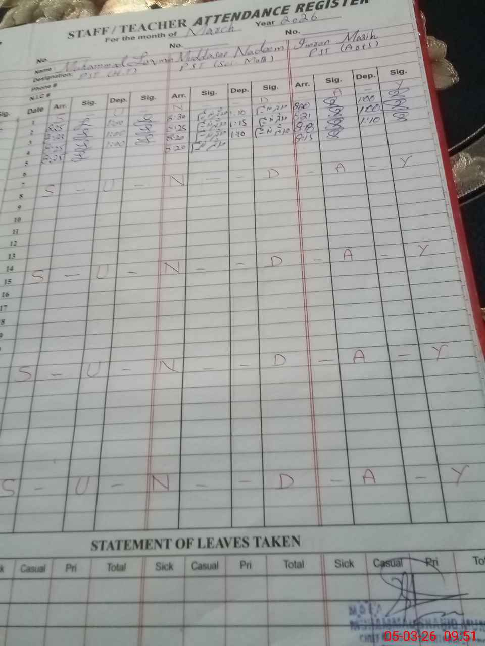 | Name: MU**** LU**** Designation: (School Headmaster's/Headmistress's) PST Phone/Cell Number: 03**** |