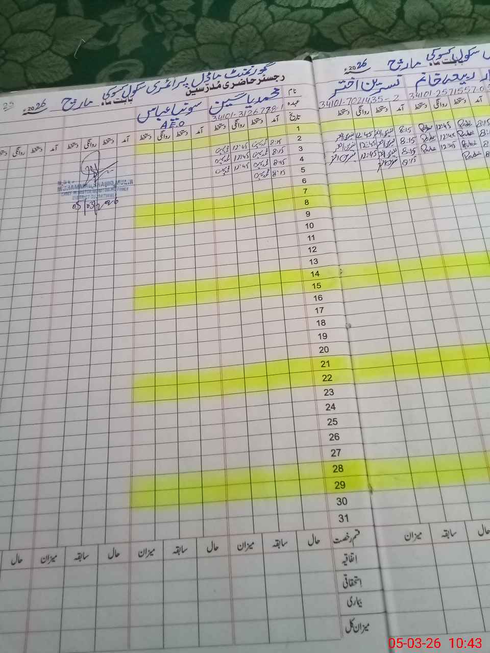 | Name: FA**** SH**** Designation: (School Headmaster's/Headmistress's) PST Phone/Cell Number: 03**** |