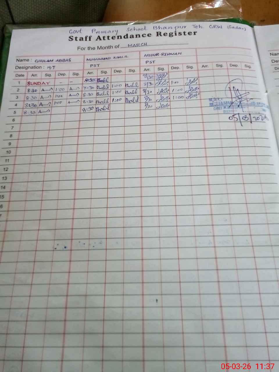 | Name: GH**** AB**** Designation: (School Headmaster's/Headmistress's) PST Phone/Cell Number: 03**** |