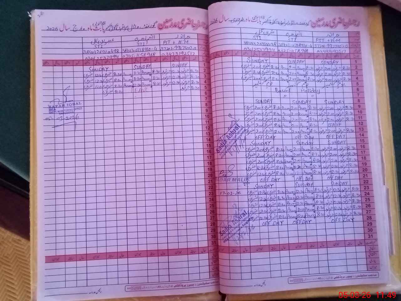 | Name: HI**** NO**** Designation: (School Headmaster's/Headmistress's) PST Phone/Cell Number: 03**** |