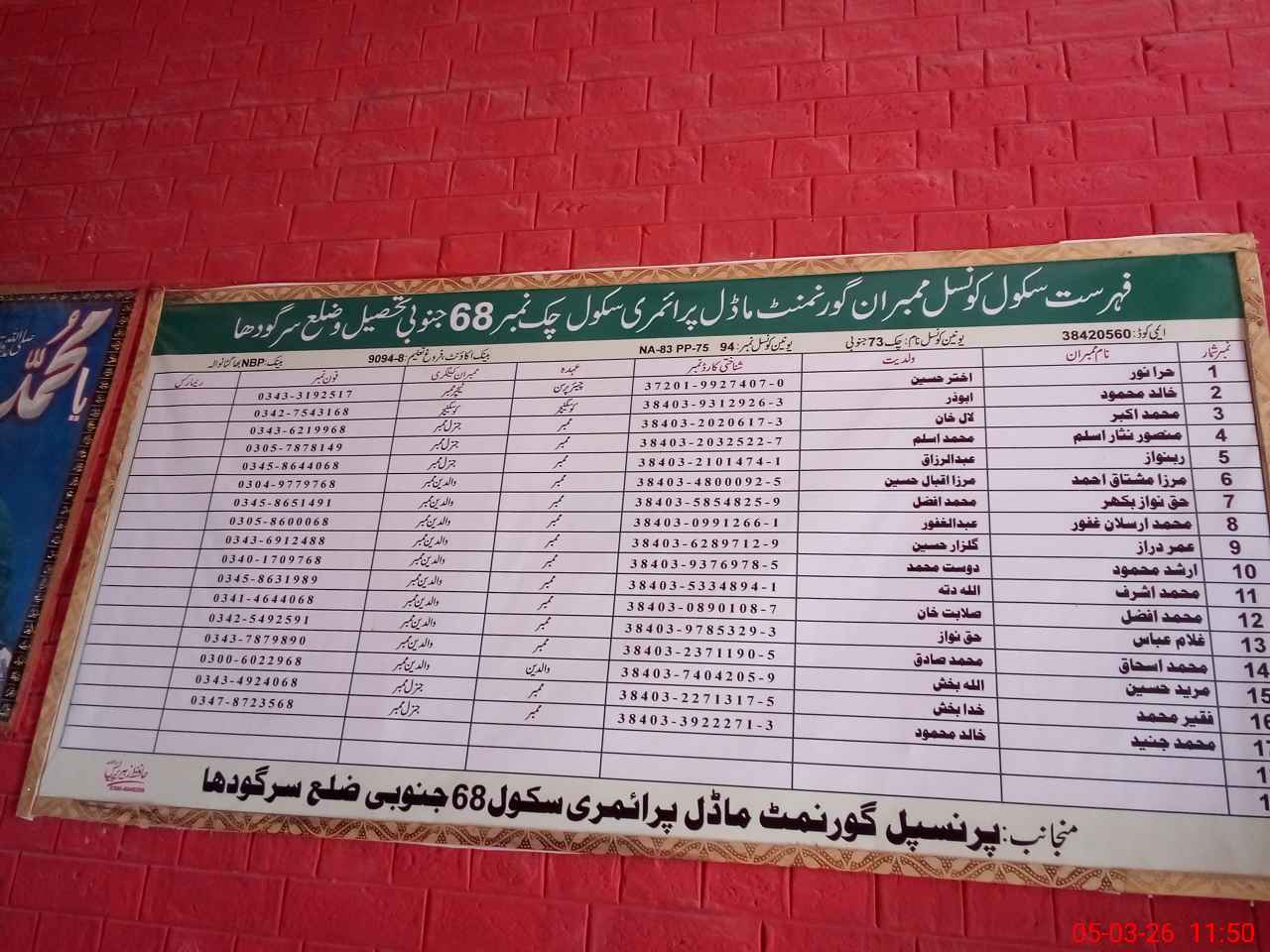 | EMIS Code: 38420560 | Name of School: GMPS CHAK NO.68 SB | |||