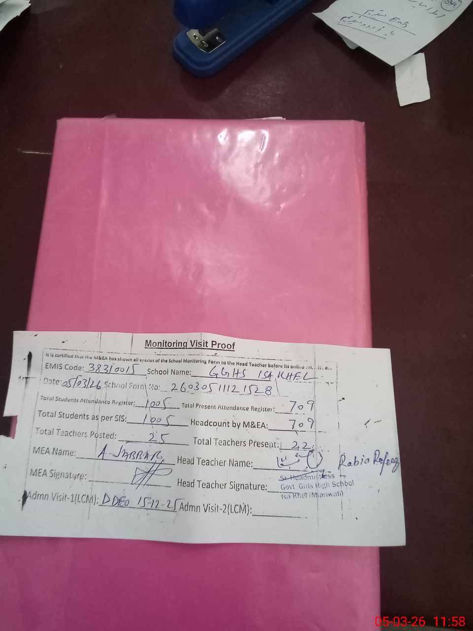 | EMIS Code: 38310015 | Name of School: GGHS ISA KHEL | |||