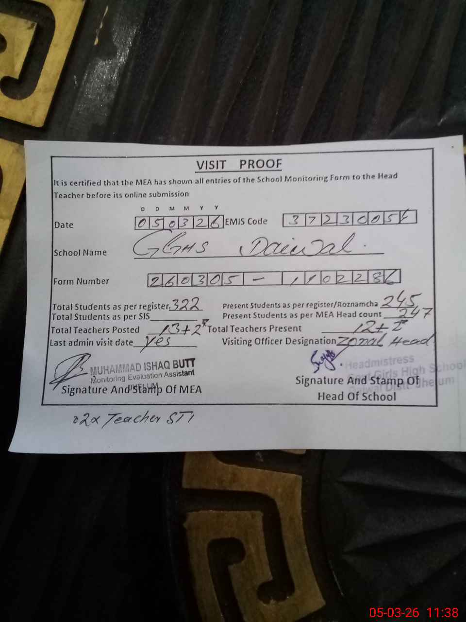 | EMIS Code: 37230054 | Name of School: GGHS DAIWAL | |||