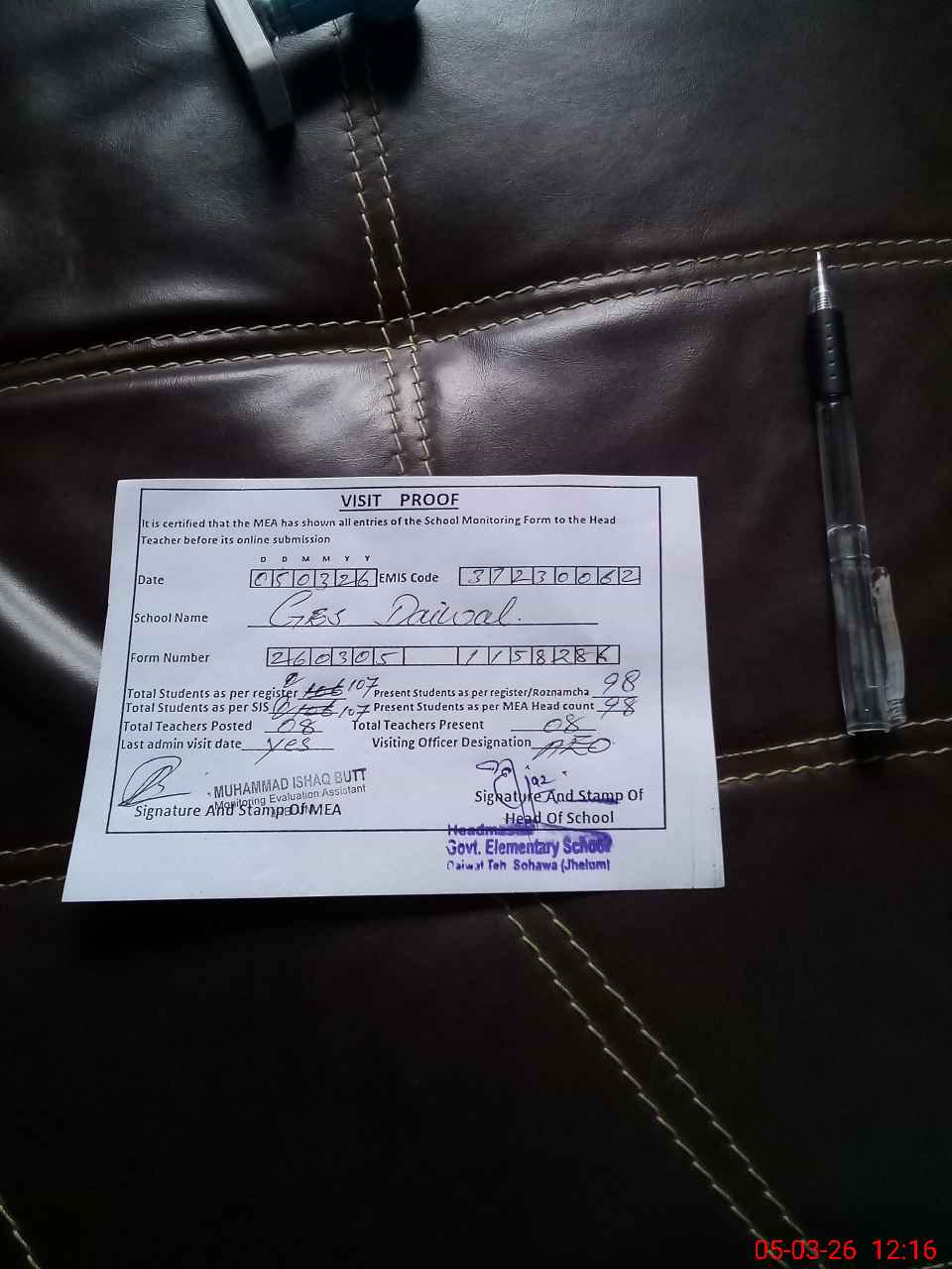 | EMIS Code: 37230062 | Name of School: GES DAIWAL | |||
