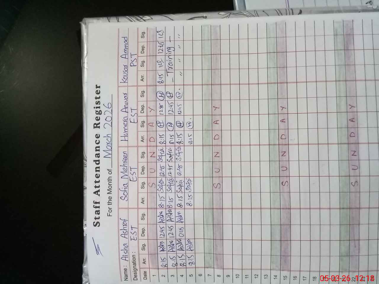 | Remarks (Use Separate Page if Required): DEO Nazia Karamat visited on 28-10-2025 DDEO Mehwish Aqeel visited on 07-10-2025 and 17-01-2026 AEO Shamsa Younas last visited on 25-02-2026 Bank statement of FTF account not available PST Kausar Ammad on ECE Refresher Training for three days so mark him on training in teacher attendance page 35220346 | |||||