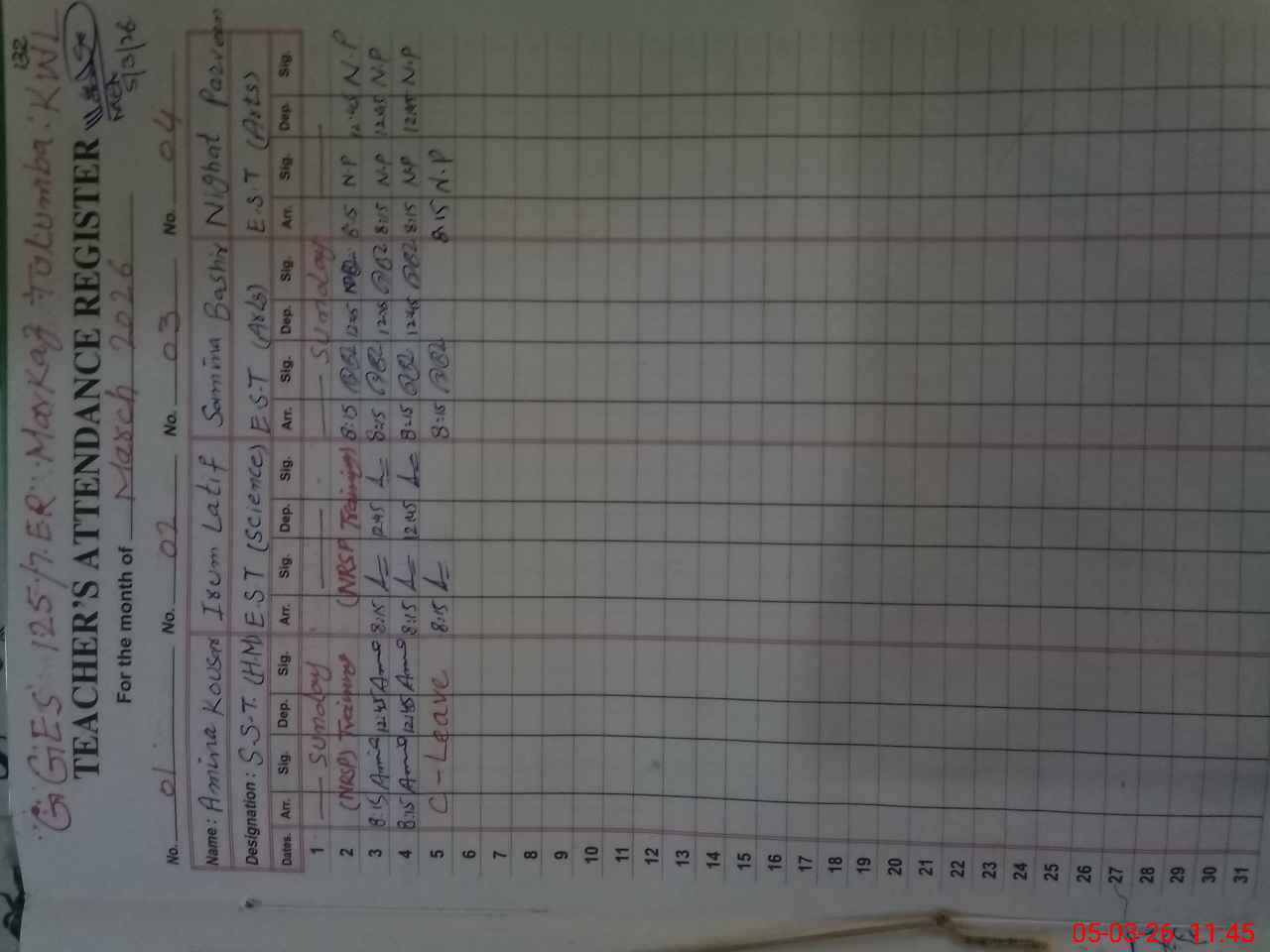 | 36**** | Am**** Ko**** | SST Arts | Regular | 0 | 11 | 0 | 0 | 0 | 0 | 0 | 0 | 0 | Casual |