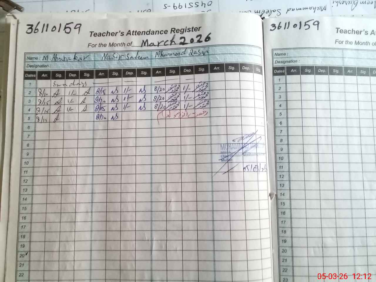 | Name: MU**** AB**** BA**** Designation: (School Headmaster's/Headmistress's) PST/PTC/JV Phone/Cell Number: 03**** |