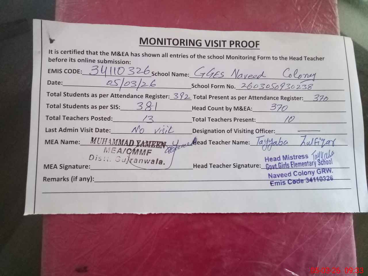 | EMIS Code: 34110326 | Name of School: GGES NAVEED COLONY | |||