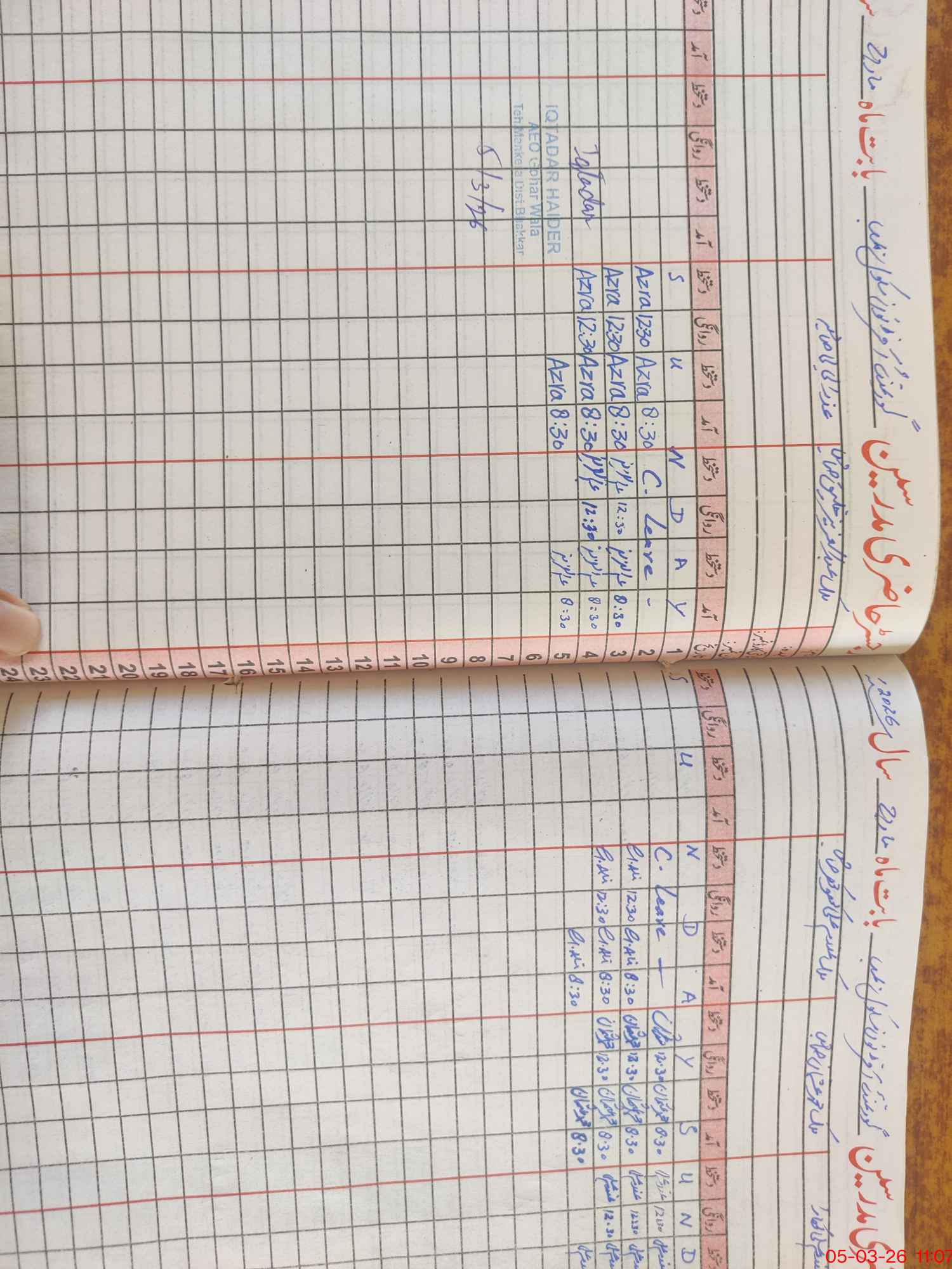 | CNIC | Full Name | Designation | R/C | Absence During Last Calender Month |