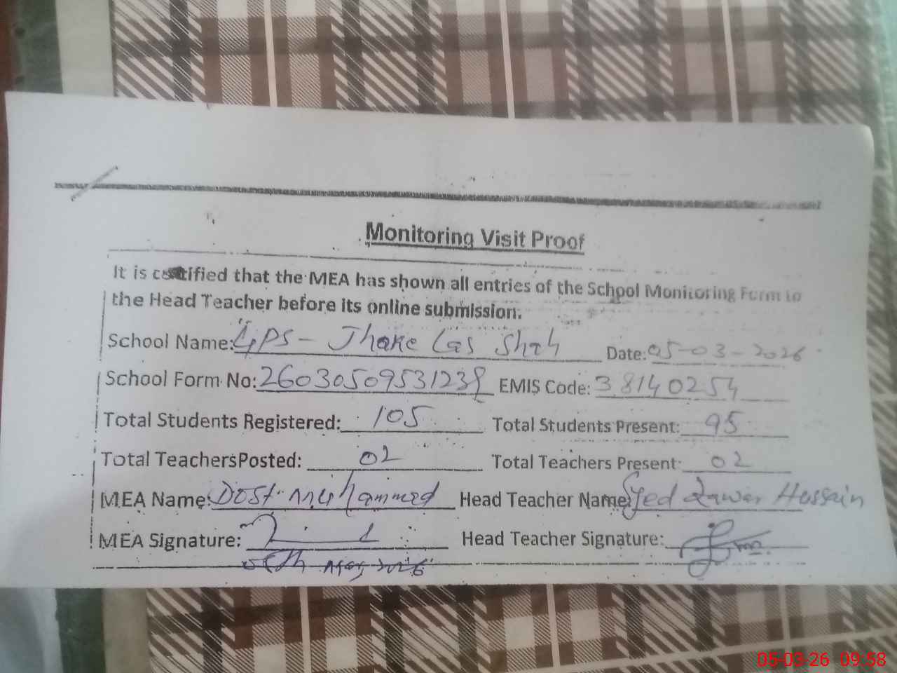 | EMIS Code: 38140254 | Name of School: GPS JHOKE LAL SHAH | |||
