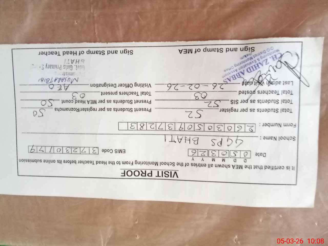 | EMIS Code: 37230179 | Name of School: GGPS BHATI | |||