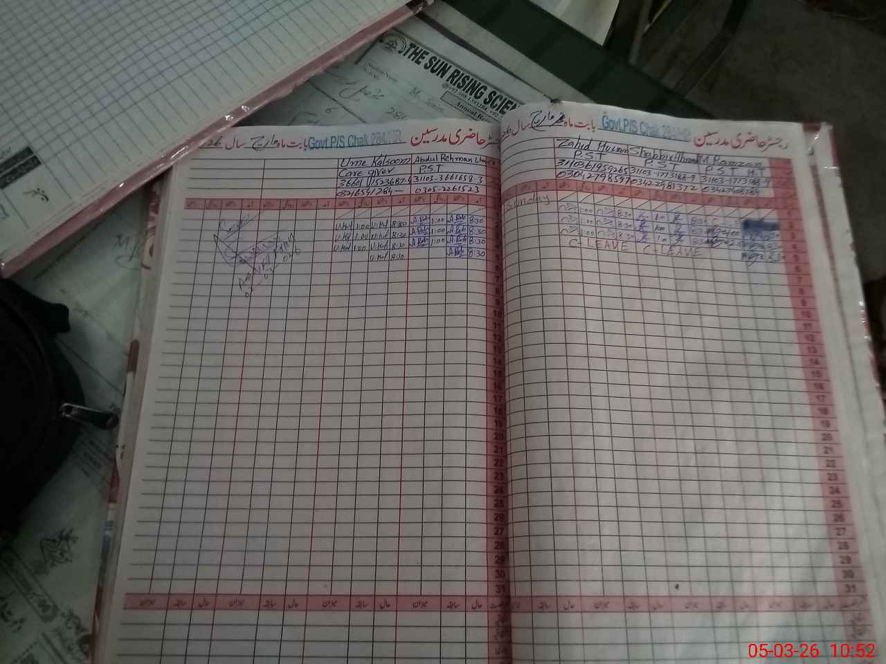 | CNIC | Full Name | Designation | R/C | Absence During Last Calender Month |