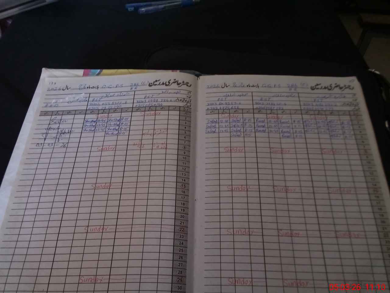 | CNIC | Full Name | Designation | R/C | Absence During Last Calender Month |