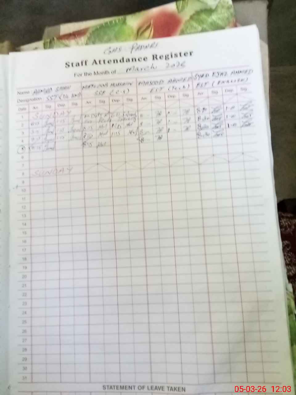 | 37**** | Mu**** Gh**** | J CLERK | Regular | 0 | 0 | 0 | 0 | 0 | 0 | 0 | 0 | 0 | Casual |